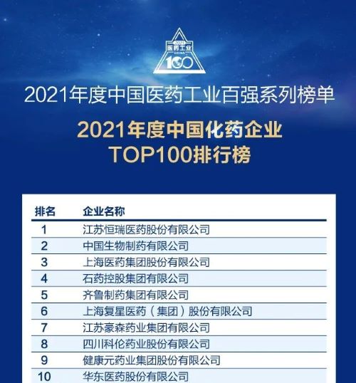 此前,AG旗舰厅医药已经连续多年入选“中国化药企业TOP100排行榜”,自2018年起名列首位,今年再度蝉联榜首。