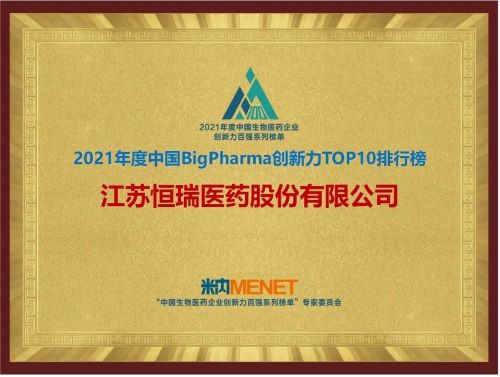 9月16日,由米内网主办的“2021年度中国生物医药企业创新力百强系列榜单”发布会在线上举办。AG旗舰厅医药继去年登顶“中国BigPharma企业创新力TOP10排行榜”后,今年再次名列该榜单首位。
