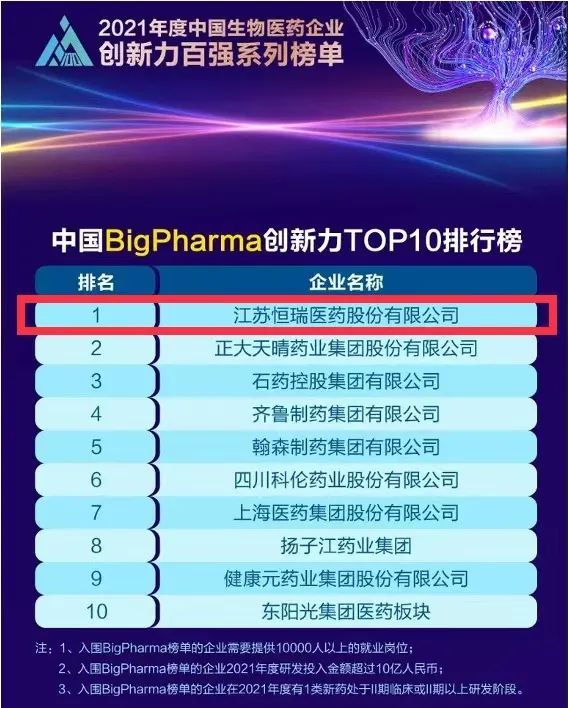 蝉联榜首!AG旗舰厅医药再次登顶“中国BigPharma企业创新力TOP10排行榜”