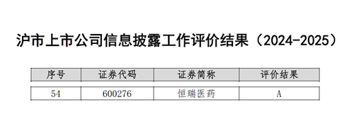 与此同时,在上海交易所公布的2024-2025年度沪市上市公司信息披露工作评价中,AG旗舰厅医药再次荣获最高评级——A级。